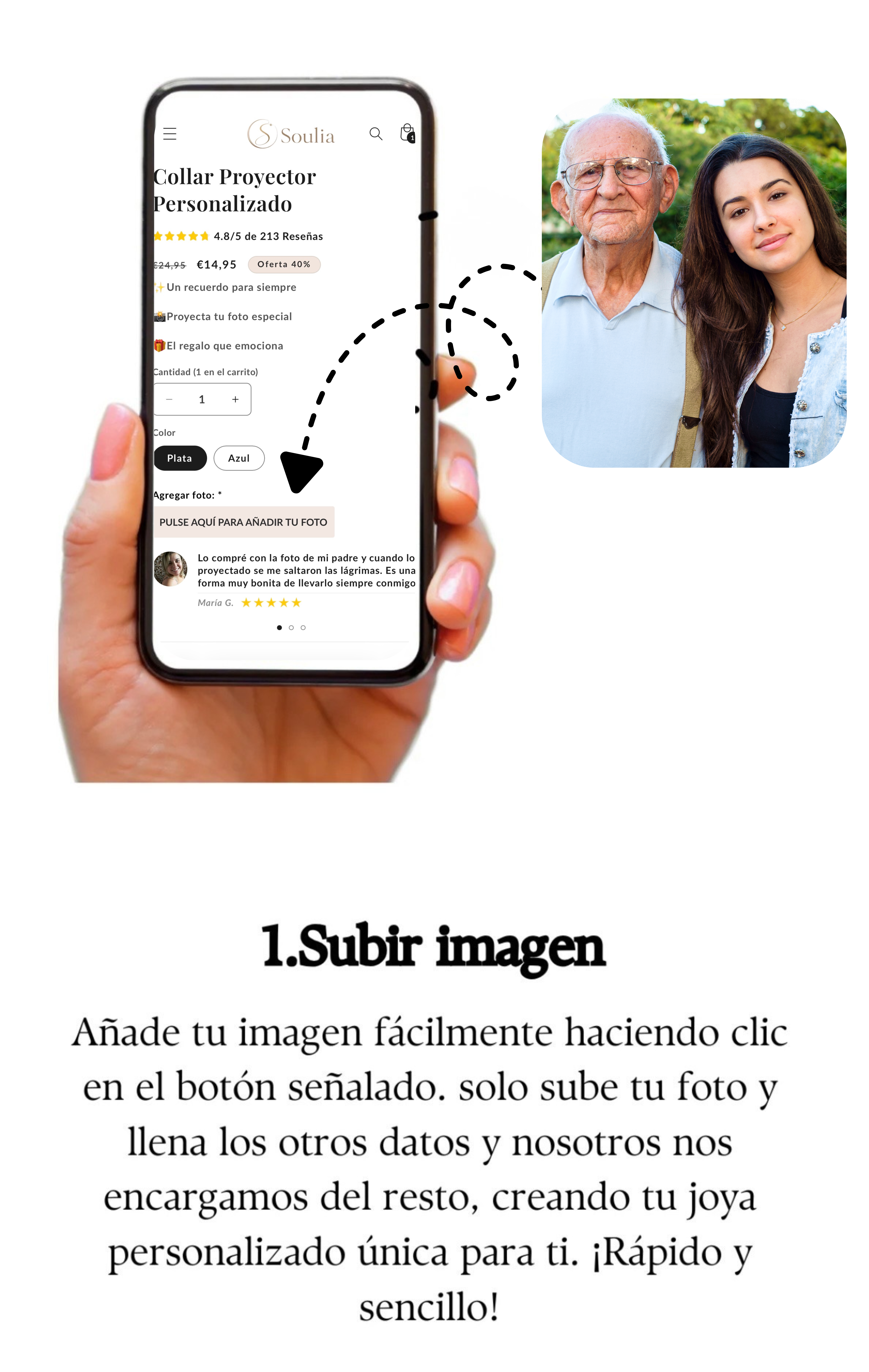La imagen es totalmente personalizada. Durante la compra podrás subir la foto que deseas que se proyecte en el interior del collar.